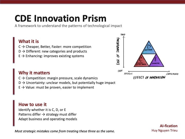 The CDE Innovation Prism is a way to make those patterns visible - and to think more clearly about what is likely to happen next.